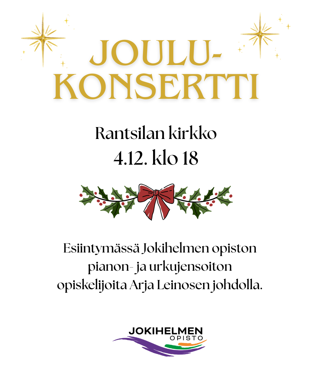 Esiintymässä Jokihelmen opiston pianon-ja urkujensoiton opiskelijoita opettaja Arja Leinosen johdolla.